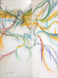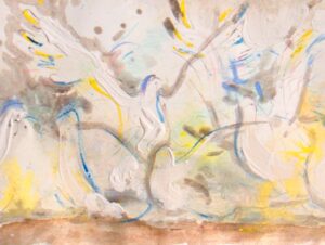 ”Astral Prayers” is a series of paintings of Doves in flight with intuitively felt color utilizing